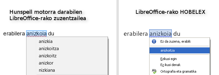 Orain webgunean kontsultagai jarri den demo-bertsioak koloreen arabera adierazten du testuetan detektatzen dituen hitz ez-egokientzat egiten dituen proposamenak: berdez markatzen ditu erabilimarka duten hitzak (adib. abalatu erabili abala eman) eta urdinez bestelako forma hobetsiak (adib.letxuga hobe uraza).